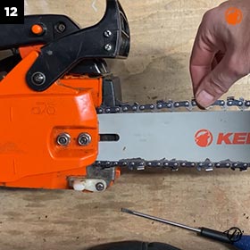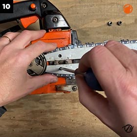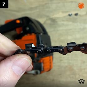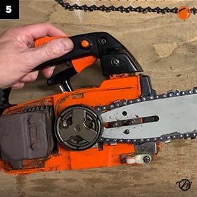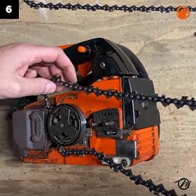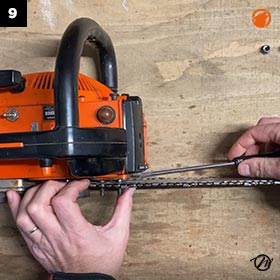8 - Mettre la nouvelle chaîne en place sur le guide de tronçonneuse.