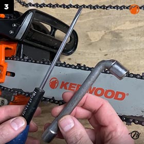 2 - Ce qui est important pour pouvoir changer une chaîne de tronçonneuse : la vis de réglage.