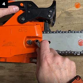 1 - Ce qui est important pour pouvoir changer une chaîne de tronçonneuse : les écrous de serrage.