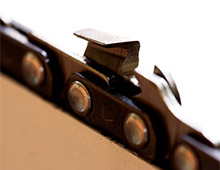 -La chaîne est constituée de petites dents qui sont inclinées de façon à s’accrocher au bois pour mieux le tronçonner et le couper dans toute son épaisseur. Si vous constatez que la chaîne adhère mal et que vous avez besoin d’exercer une pression importante pour effectuer votre découpe, alors il est temps de remplacer la chaîne.