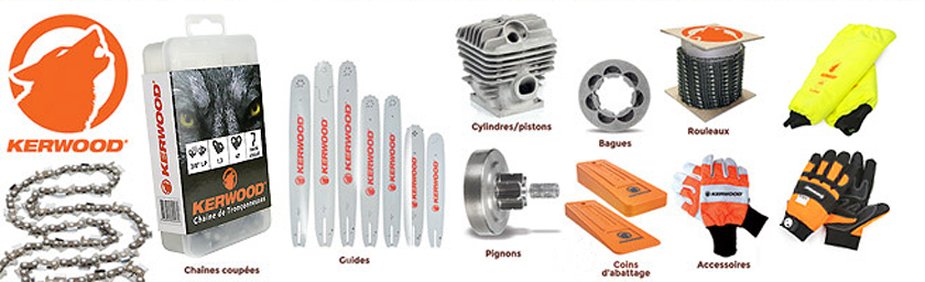 Le gros de notre catalogue Kerwood est constitué de chaînes et de guides pour tronçonneuses. Mais nous pouvons vous proposer aussi, des gants anti-coupures, des cylindres et pièces de carburations, des vêtements EPI...