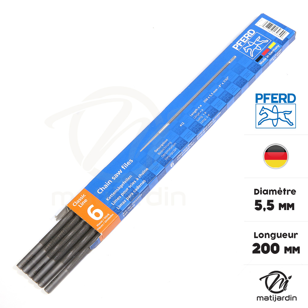 Matijardin vous propose les limes rondes PFERD, en boîte de 6, ou blister de 2, allant du diamètre 4 mm au diamètre 5,5 mm ainsi que le manche de lime adéquate.