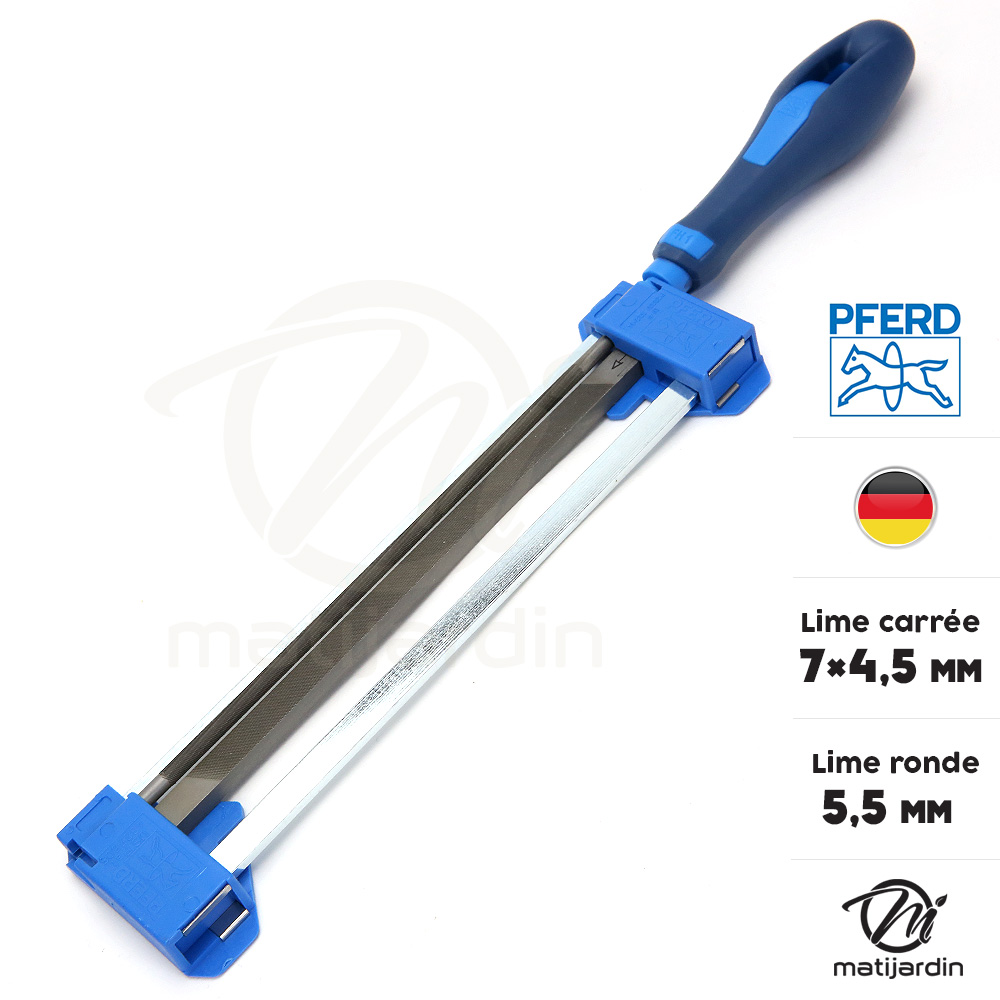 Nous proposons également le porte-lime d'affûtage PFERD avec lime ronde et lime carrée