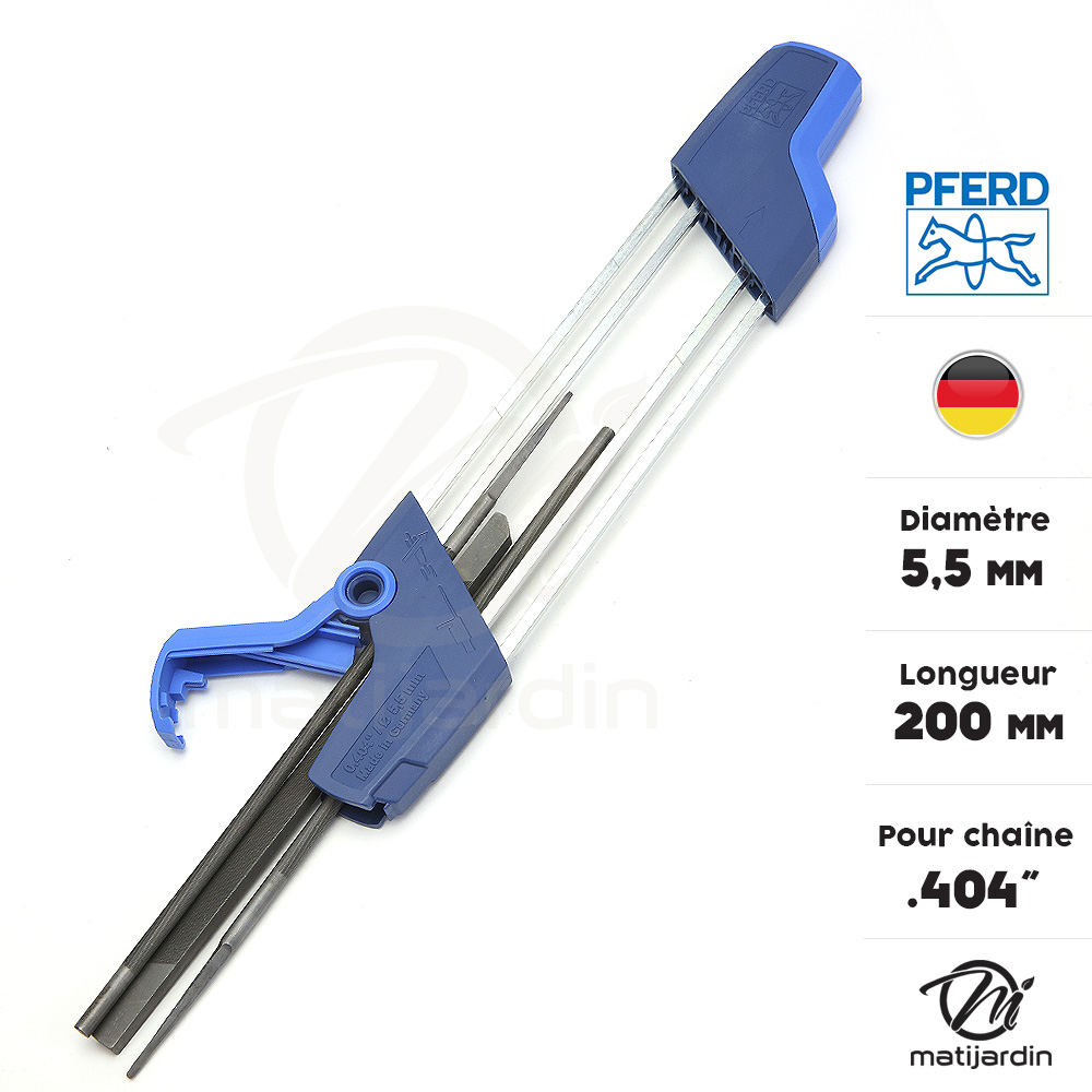 Depuis 1799, PFERD fabrique des limes d'affûtage de renommée mondiale. Depuis plus de 200 ans, cette expérience acquise et transmise, a permis à un développement continuel pour proposer des limes d'affûtage d'excellence, leur garantissant une longévité exceptionnelle à des prix réellement abordables. PFERD, au travers de la technologie de production et de leurs contrôles de qualité drastiques, permet aux limes d'être certifiées norme ISO 9001. Depuis les débuts, le "cheval franchissant l'obstacle" - PFERD en allemand - est une marque distinctive, synonyme de qualité supérieure, de puissance élevée, et de rentabilité.