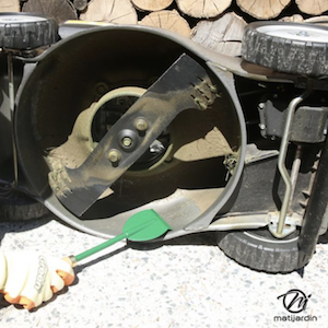 De temps en temps, cela vaut la peine de retourner la tondeuse pour constater que la lame a pris quelques coups. Elle est ébréchée, voire tordue ou encore émoussée. Dans le meilleur des cas un affûtage sera suffisant. Sinon il faut changer la lame. C’est pas sorcier mais il faut prendre quelques précautions.