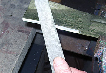 Celui-ci conduit à de l’enlèvement de matière et il faut qu’il soit effectué de manière égale de chaque côté, sinon la rotation de la lame sera inégale et provoquera des vibrations qui peuvent abimer l’axe et le vilebrequin. Pour être certain de son équilibre, vous pouvez mettre la lame sur un axe, un clou par exemple, contre un mur et voir si elle a tendance à tourner davantage vers un côté. En général l’équilibre est bon. Sinon vous continuez à affûter du côté où il y a trop de matière.