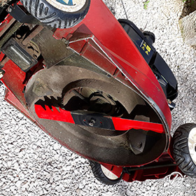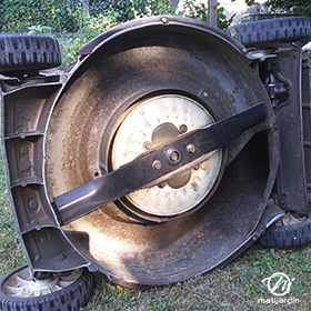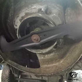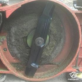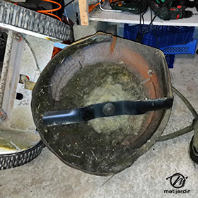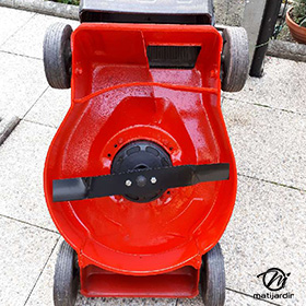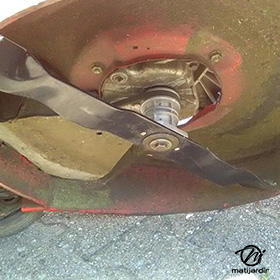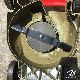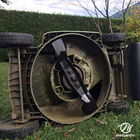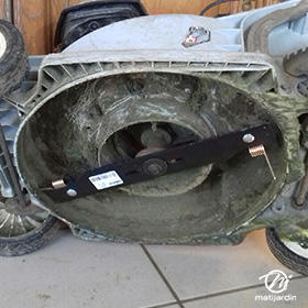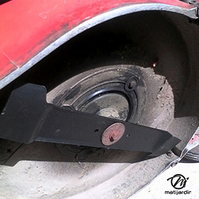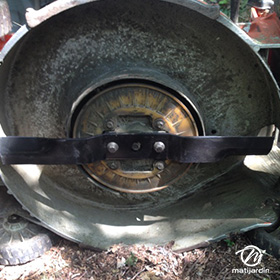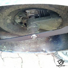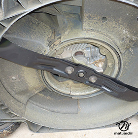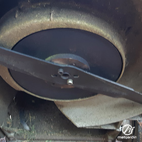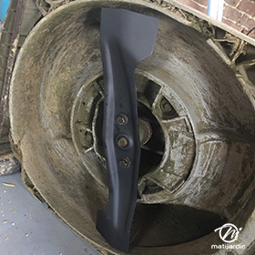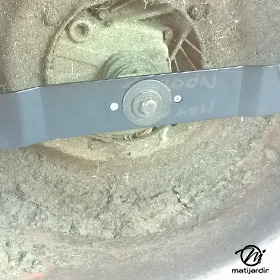Lame tondeuse pour Castelgarden NG464 81004365/3 coupe 43,5 cm montée sur une tondeuse Castelgarden. Notre client avait vérifié toutes les caractéristiques de sa lame : longueur 43,5 cm, alésage central 18,5 cm et entraxe 65 cm avant de commander sur notre site. Photo pour Matijardin.