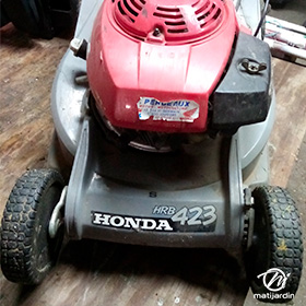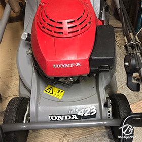 Lame tondeuse pour Honda HRB 423 72511 VA9 B50 coupe 42 cm montée sur une tondeuse Honda HRB423. Notre client avait vérifié toutes les caractéristiques de sa lame : longueur 42 cm, alésage central 28 cm et entraxe 50 et 94 cm avant de commander sur notre site. Photo pour Matijardin. Merci à notre client Pierre D.