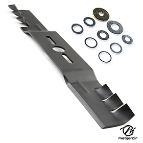 Lame tondeuse universelle mulching Oregon Gator Mulcher™. Coupe 52,7 cm montée sur une tondeuse Garland Grass 1255 ZSG photo pour Matijardin. Notre client avait vérifié toutes les caractéristiques de sa lame : longueur 52,7 cm, alésage central 25,4 cm et entraxe avant de commander sur notre site. Cette lame est livrée avec un kit rondelle d'adaptation. Diamètre 9,5; 11; 12,7; 14,3; 15,9; 19; 22,2; 9,5x57 mm. Merci à notre client Alain B.