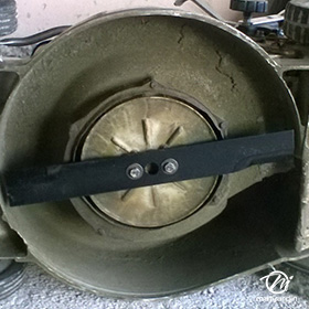 Lame tondeuse pour Kaaz LM535 91014159 coupe 53 cm montée sur une tondeuse kaaz LM535. Notre client avait vérifié toutes les caractéristiques de sa lame : longueur 53 cm, alésage central 22 cm et entraxe 89 cm avant de commander sur notre site. Merci à notre client Christian D.