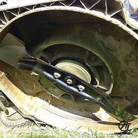Lame tondeuse pour Roque & Lecoeur Airel 140735 coupe 53 cm montée sur une tondeuse Roque et Lecoeur Airel. Notre client avait vérifié toutes les caractéristiques de sa lame : longueur 53 cm, alésage central 24,5 cm et entraxe avant de commander sur notre site. Merci à notre client andré C.