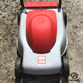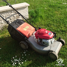 Et..! oui il n'existe pas que des tondeuses à essence, nous en avons aussi des électriques, la preuve.