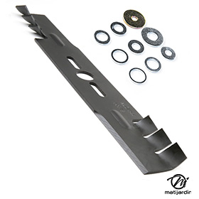 Lame tondeuse pour Etesia TEKB TEBB N°171501 coupe 51 cm montée sur une tondeuse Etesia pro51. Notre client avait vérifié toutes les caractéristiques de sa lame : longueur 51 cm, alésage central 32,5 + ergots et entraxe avant de commander sur notre site. Photo pour Matijardin.