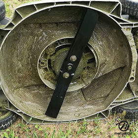 Lame tondeuse universelle mulching galbée Rotary Premium 45,7 cm montée sur une tondeuse Mc-Culloch M46-125R photo pour Matijardin.