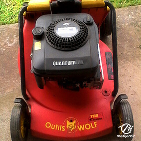 Lame tondeuse pour Wolf 4250-070 coupe 51 cm montée sur une tondeuse avec un moteur Wolf TEB 51. Notre client avait vérifié toutes les caractéristiques de sa lame : longueur 51 cm, alésage central 32,5+Ergot mm et entraxe avant de commander sur notre site. Merci à notre client Jean-Louis V.