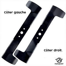 En règle générale, le tranchant de votre lame doit "regarder" votre carter. L'ailette ou soufflant de votre lame doit remonter, aussi, en direction du carter. Sur certaines lames, la courbe de l'ailette n'est pas très visible, il faut donc bien observer votre lame.