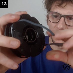 14) : Placer un des deux fils dans l'un des deux passe fils.