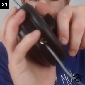 21) : Tourner le bouton pour voir si vous avez bien libéré les fils des encoches de la bobine.