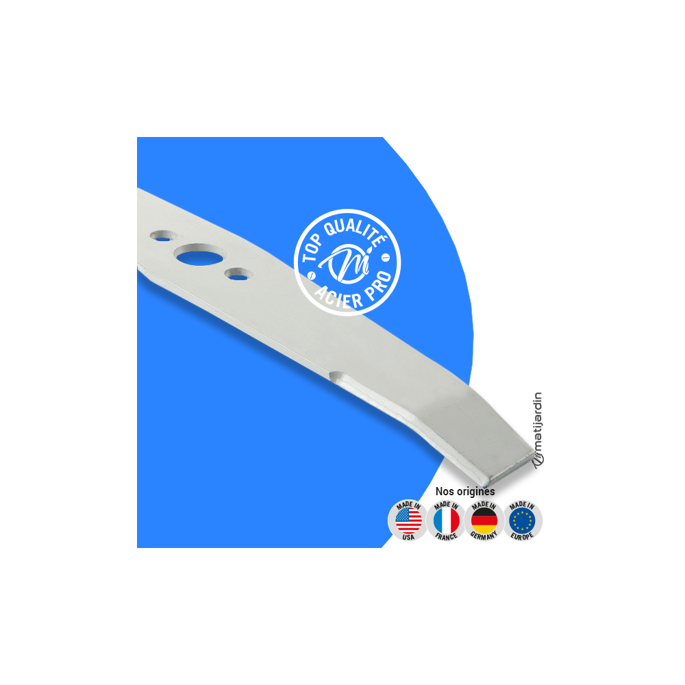 Astuce remontage. Au remontage, attention au sens de montage de la lame ! Pour la plupart des modèles de tondeuse, le côté plat du tranchant de la lame (illustration 2) doit se retrouver côté pelouse. Soyez vigilant, la partie coupante de votre lame peut vite vous envoyer aux urgences ! Matijardin vous conseille d’utiliser des gants.