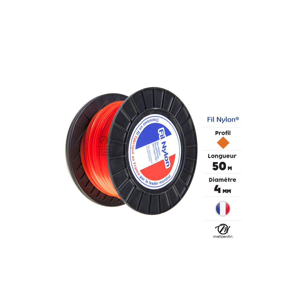 Fil débroussailleuse Carré 4 mm x 50 m Fil Nylon