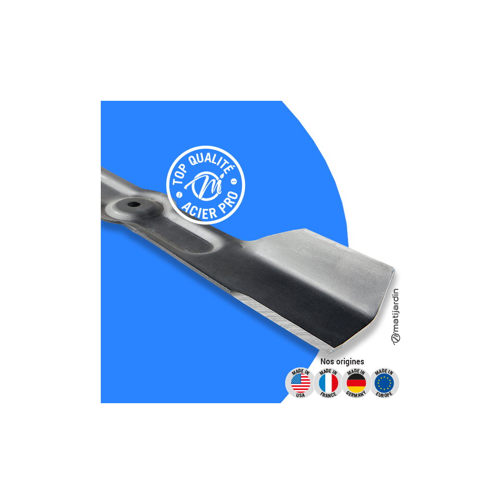 Astuce remontage. Au remontage, attention au sens de montage de la lame ! Pour la plupart des modèles de tondeuse, le côté plat du tranchant de la lame (illustration 2) doit se retrouver côté pelouse. Soyez vigilant, la partie coupante de votre lame peut vite vous envoyer aux urgences ! Matijardin vous conseille d’utiliser des gants.