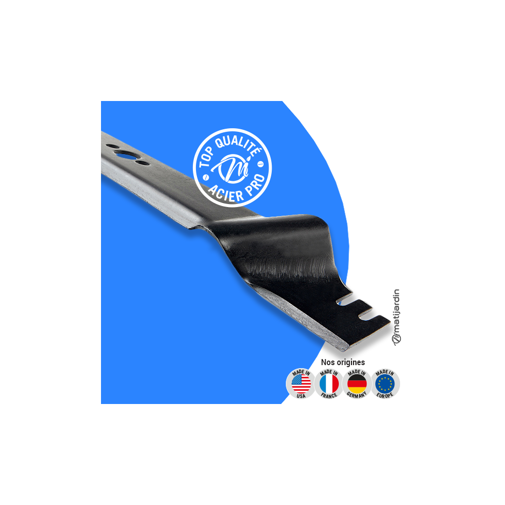 Astuce remontage. Au remontage, attention au sens de montage de la lame ! Pour la plupart des modèles de tondeuse, le côté plat du tranchant de la lame (illustration 2) doit se retrouver côté pelouse. Soyez vigilant, la partie coupante de votre lame peut vite vous envoyer aux urgences ! Matijardin vous conseille d’utiliser des gants.