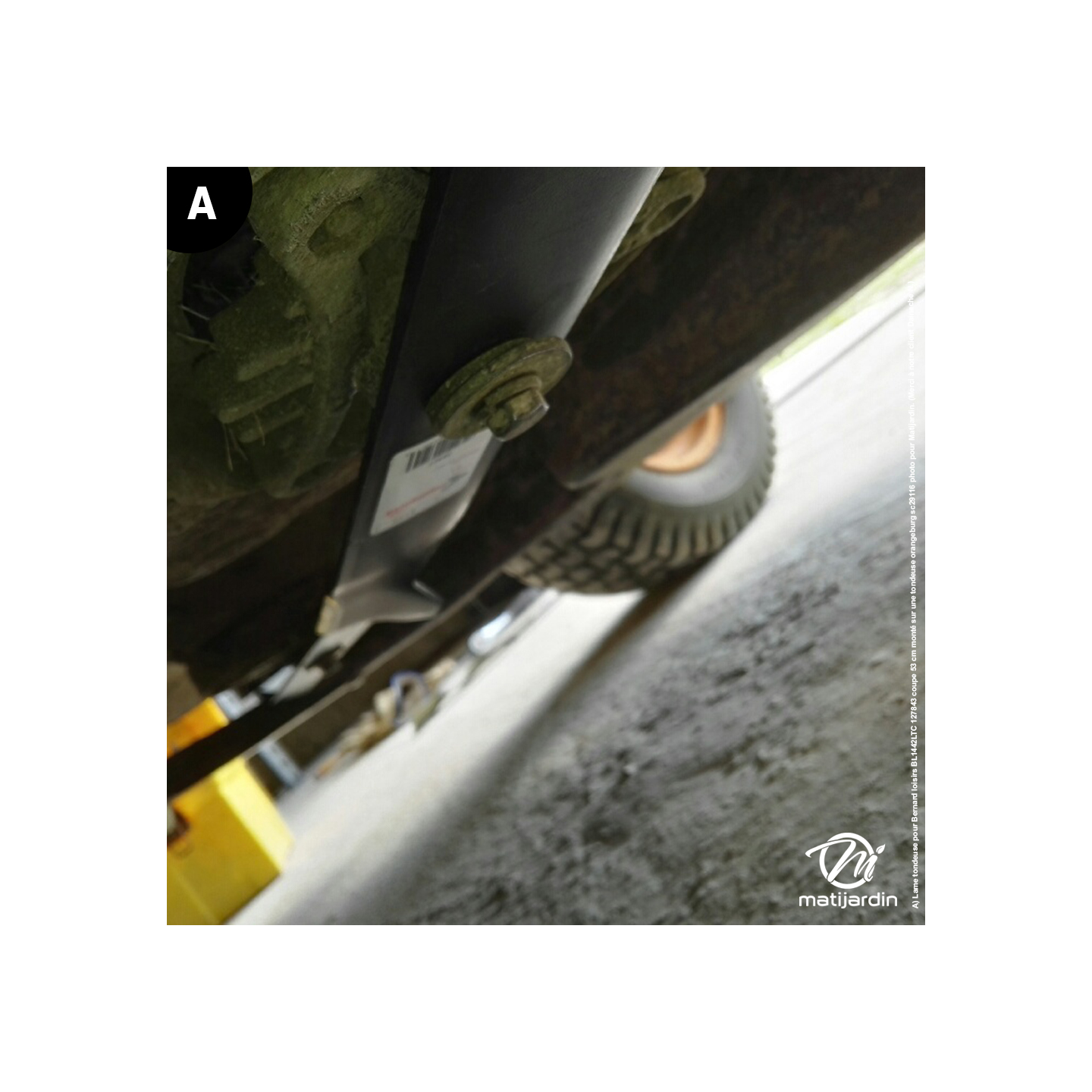 A) Lame tondeuse pour Bernard loisirs BL1442LTC 127843 coupe 53 cm monté sur une tondeuse orangeburg sc29116 photo pour Matijardin. (Merci à notre client Daineche N.)