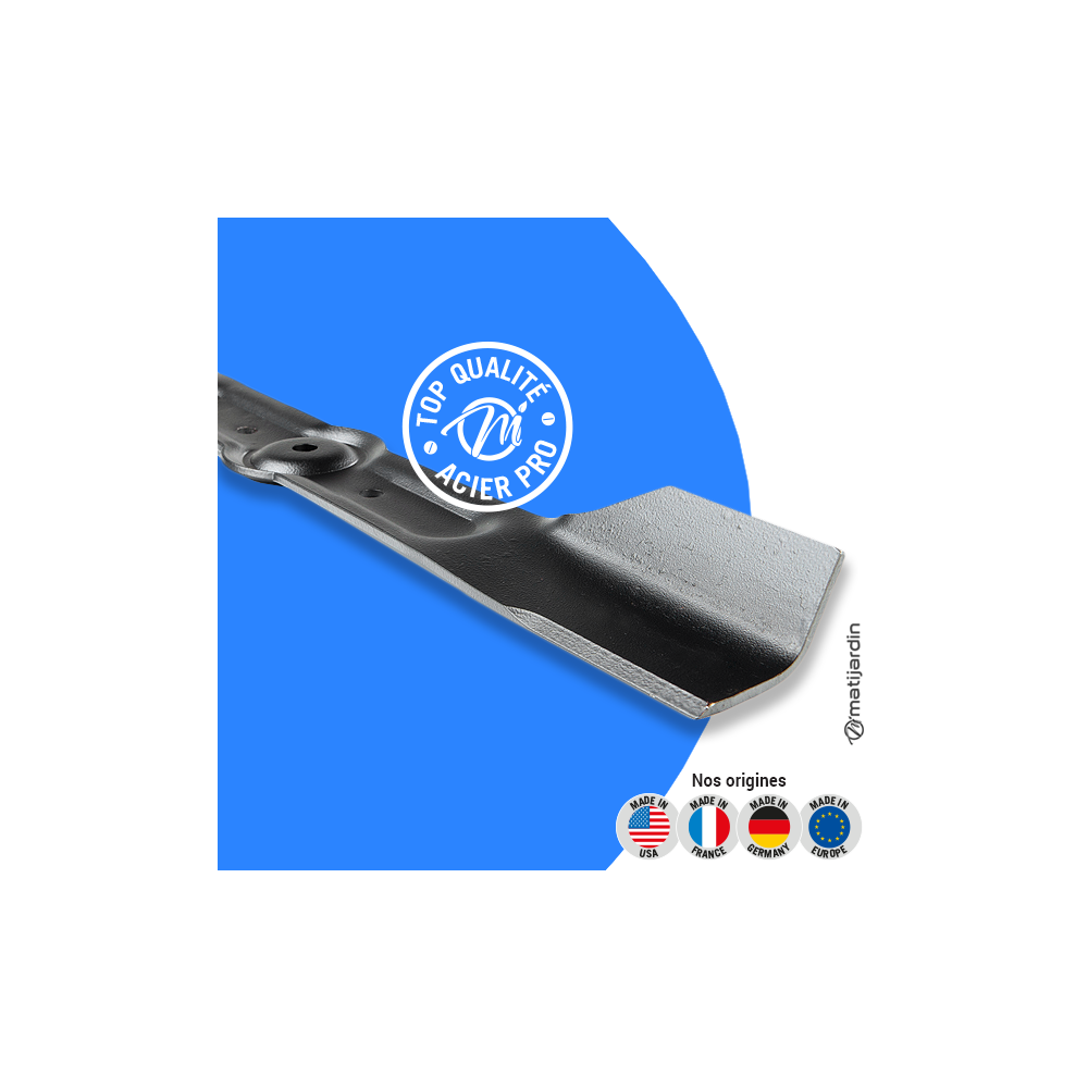 Astuce remontage. Au remontage, attention au sens de montage de la lame ! Pour la plupart des modèles de tondeuse, le côté plat du tranchant de la lame (illustration 2) doit se retrouver côté pelouse. Soyez vigilant, la partie coupante de votre lame peut vite vous envoyer aux urgences ! Matijardin vous conseille d’utiliser des gants.