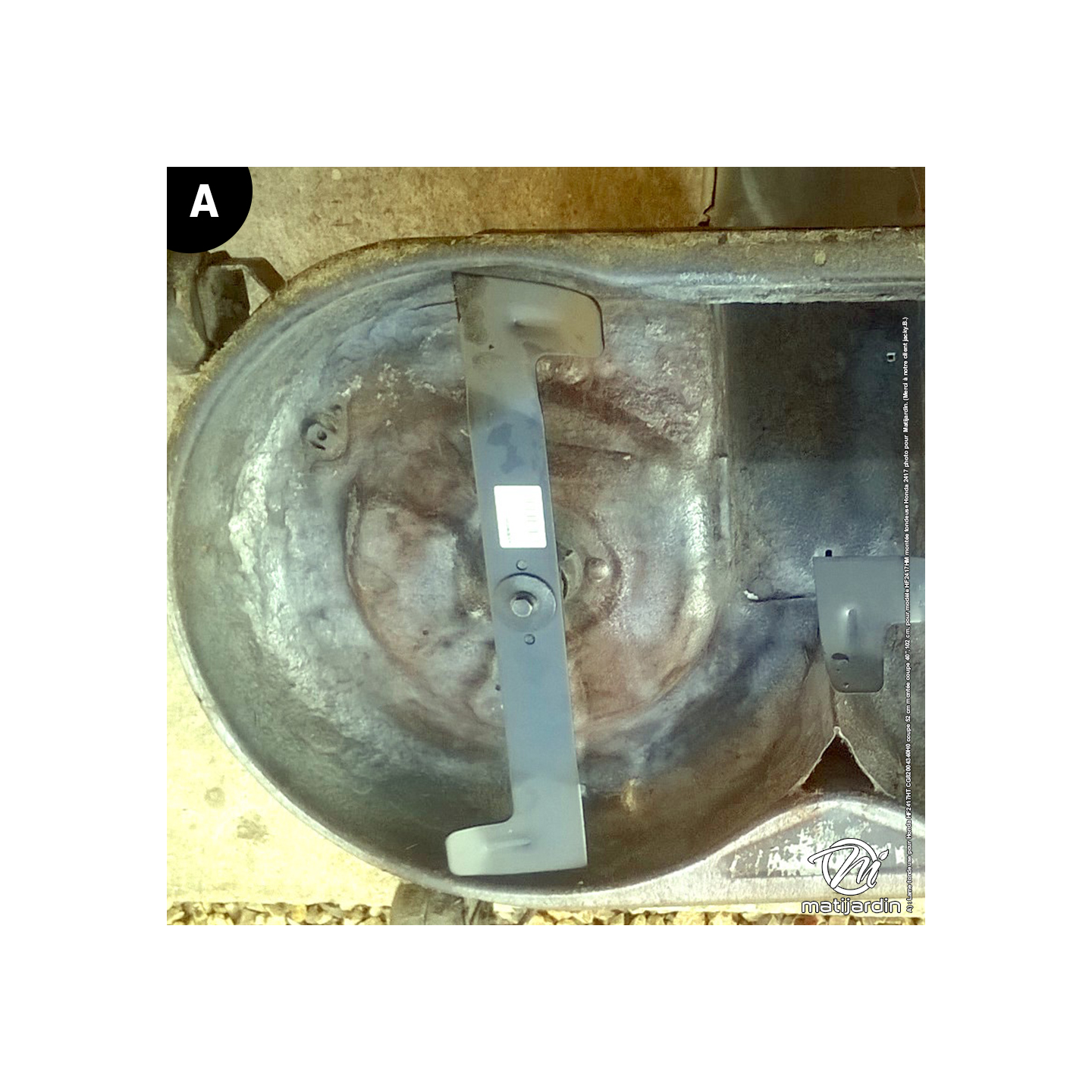 A) Lame tondeuse pour Honda HF2417HT CG82004340H0 coupe 52 cm montée tondeuse Honda 2417 photo pour Matijardin. (Merci à notre client jacky.B.)