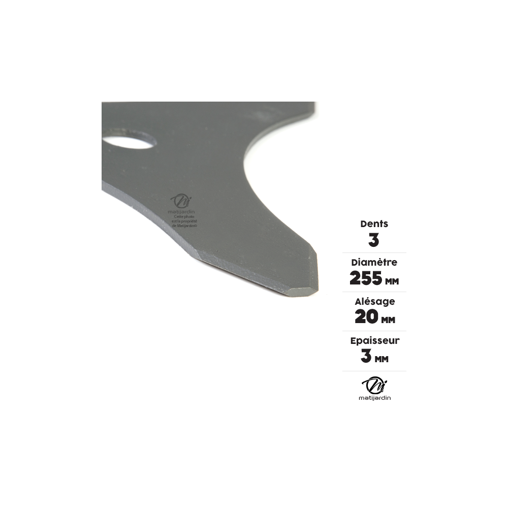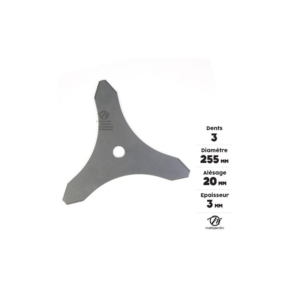 Lame débroussailleuse 3 dents Ø 255 mm x 3 mm Alésage 20 mm