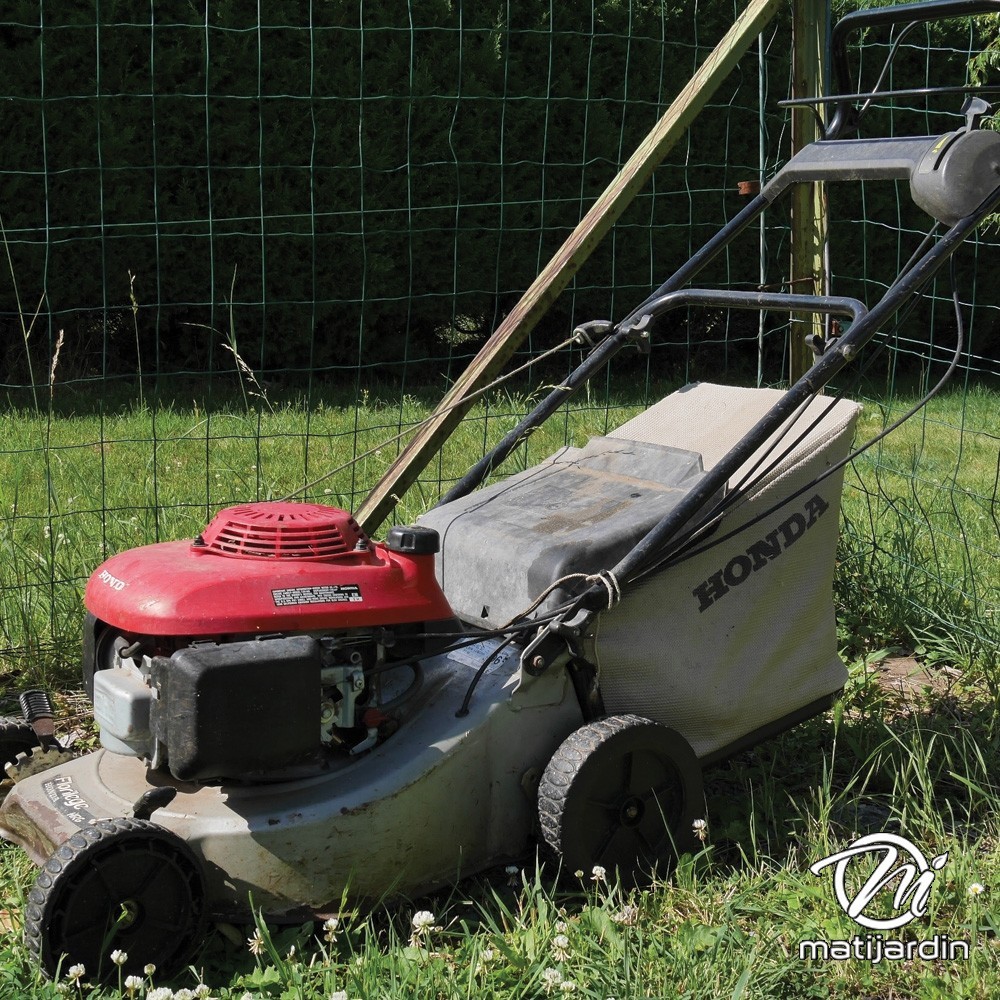 Nettoyage. Pour une durée de vie plus longue du carter de coupe de votre tondeuse à gazon, pensez bien à le nettoyer à l'aide d'une spatule prévue à cet effet. Evitez le jet d'eau et autres nettoyeurs haute pression qui auront tendance à faire rouiller et détériorer les éléments en acier de votre tondeuse (roulements, vis de lame, axe de roues...)