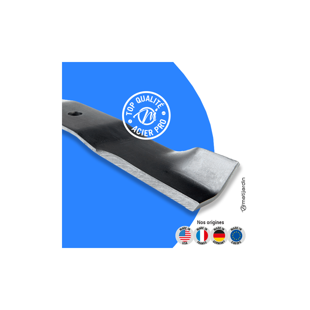 Astuce remontage. Au remontage, attention au sens de montage de la lame ! Pour la plupart des modèles de tondeuse, le côté plat du tranchant de la lame (illustration 2) doit se retrouver côté pelouse. Soyez vigilant, la partie coupante de votre lame peut vite vous envoyer aux urgences ! Matijardin vous conseille d’utiliser des gants.