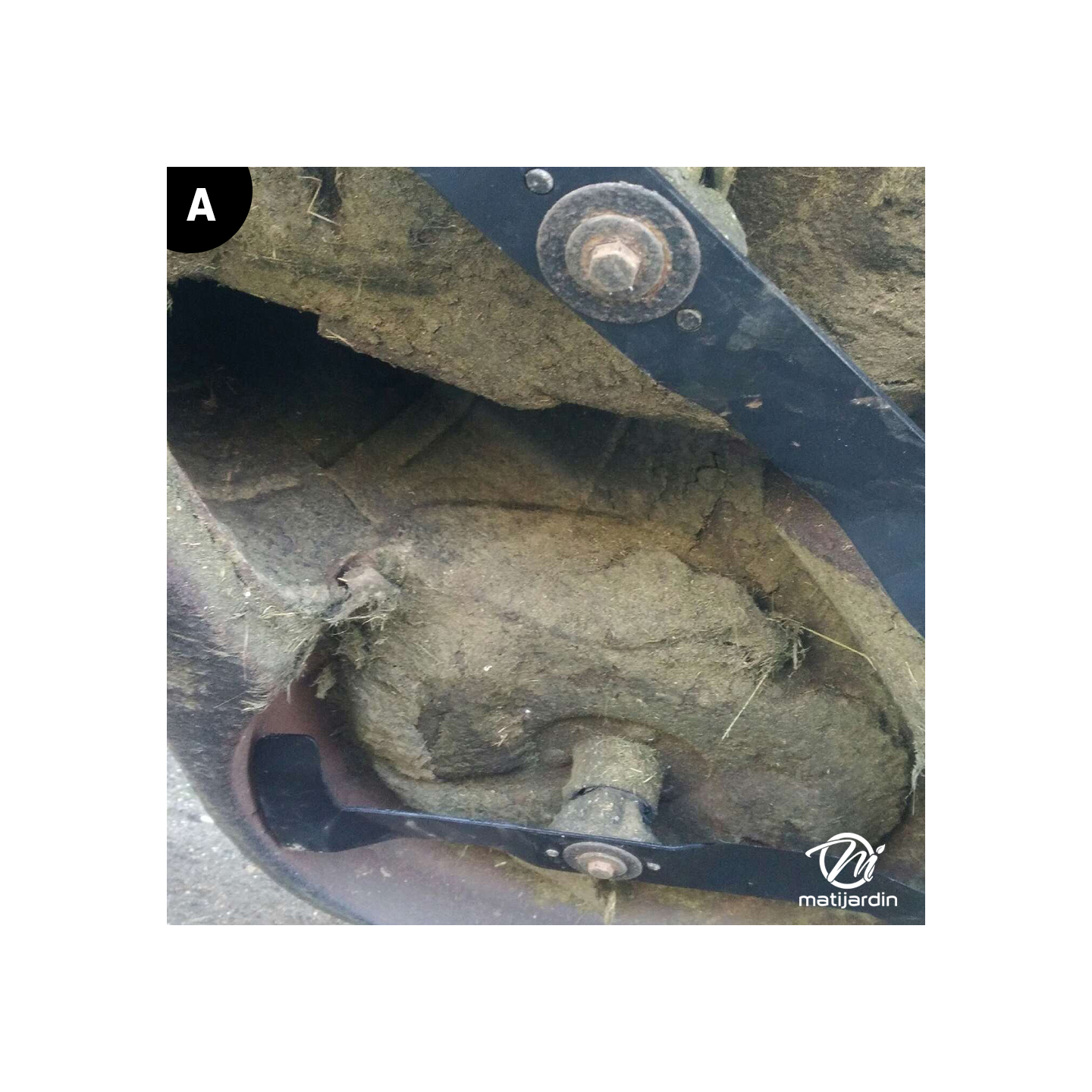 Nettoyage. Pour une durée de vie plus longue du carter de coupe de votre tondeuse à gazon, pensez bien à le nettoyer à l'aide d'une spatule prévue à cet effet. Evitez le jet d'eau et autres nettoyeurs haute pression qui auront tendance à faire rouiller et détériorer les éléments en acier de votre tondeuse (roulements, vis de lame, axe de roues...)