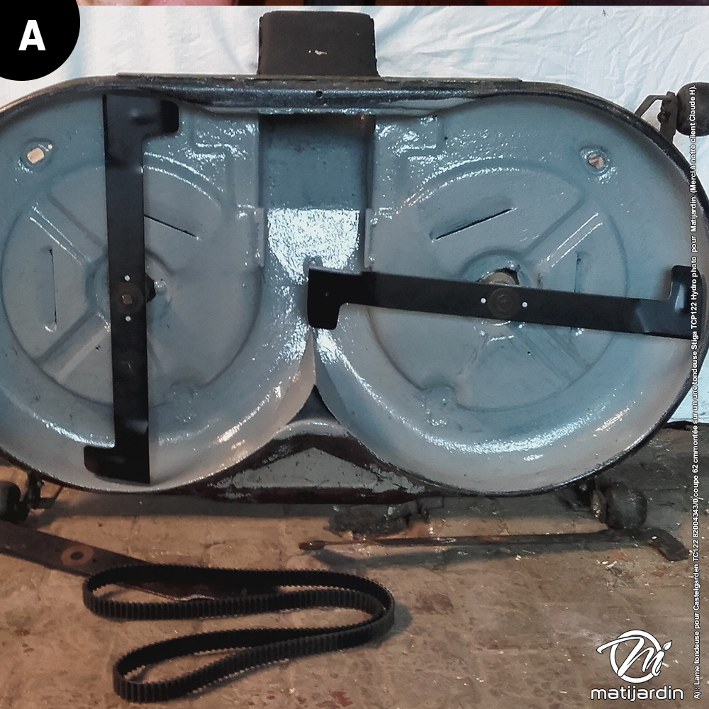 A) : Lame tondeuse pour Castelgarden TC122 82004343/0 coupe 62 cmmontée sur un une tondeuse Stiga TCP122 Hydro photo pour Matijardin. (Merci à notre client Claude H).