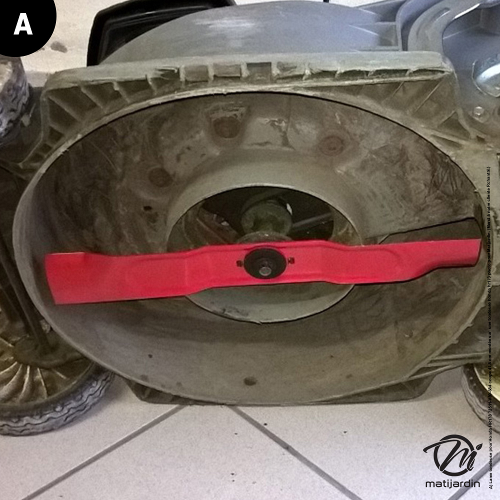 A) Lame tondeuse pour Honda HR173 72511-V89-684 coupe 41,8 cm montée sur une tondeuse honda hr173 photo pour Matijardin. (Merci à notre cliente P.chantal.)