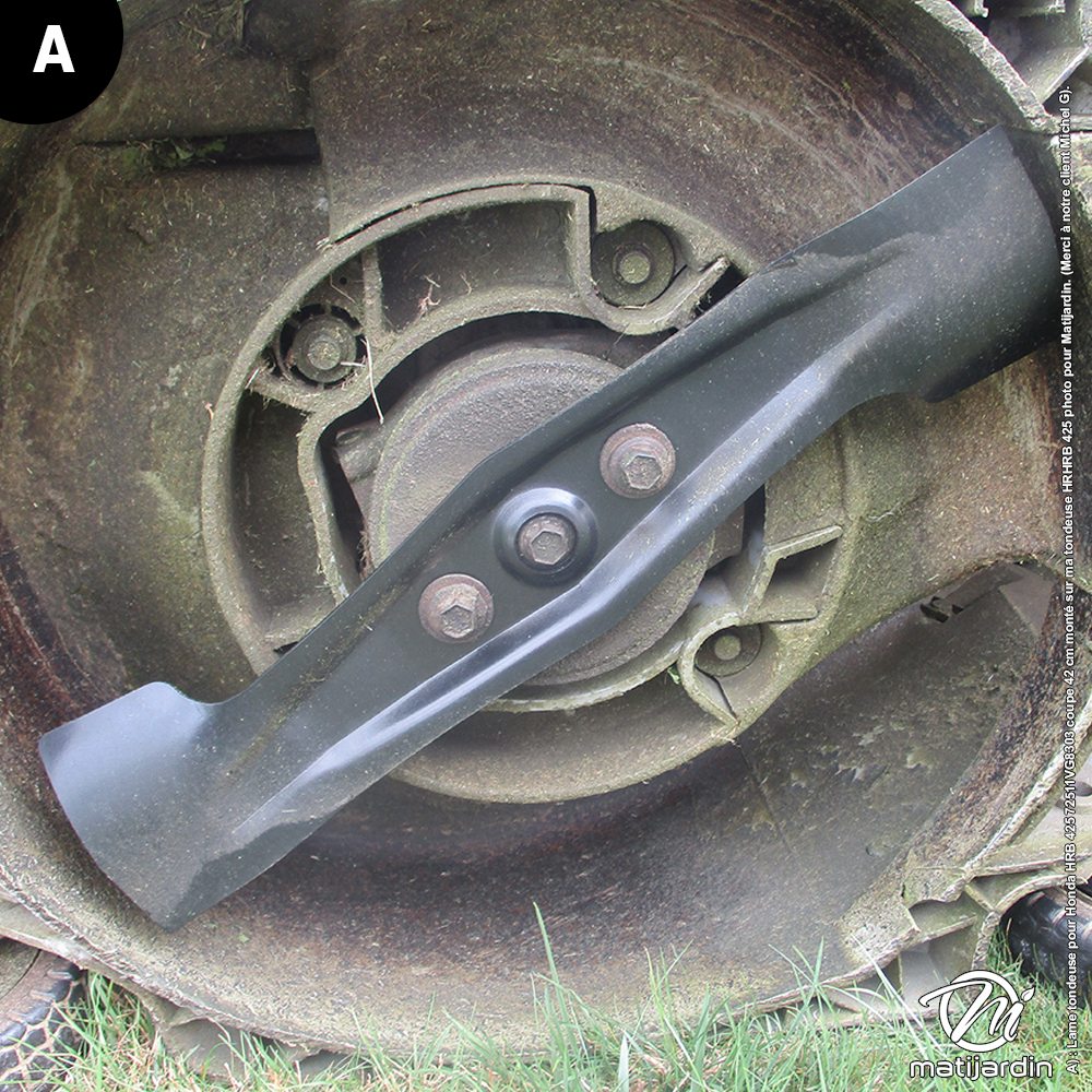 A) : Lame tondeuse pour Honda HRB 425 72511VG8303 coupe 42 cm monté sur ma tondeuse HRHRB 425 photo pour Matijardin. (Merci à notre client Michel G).