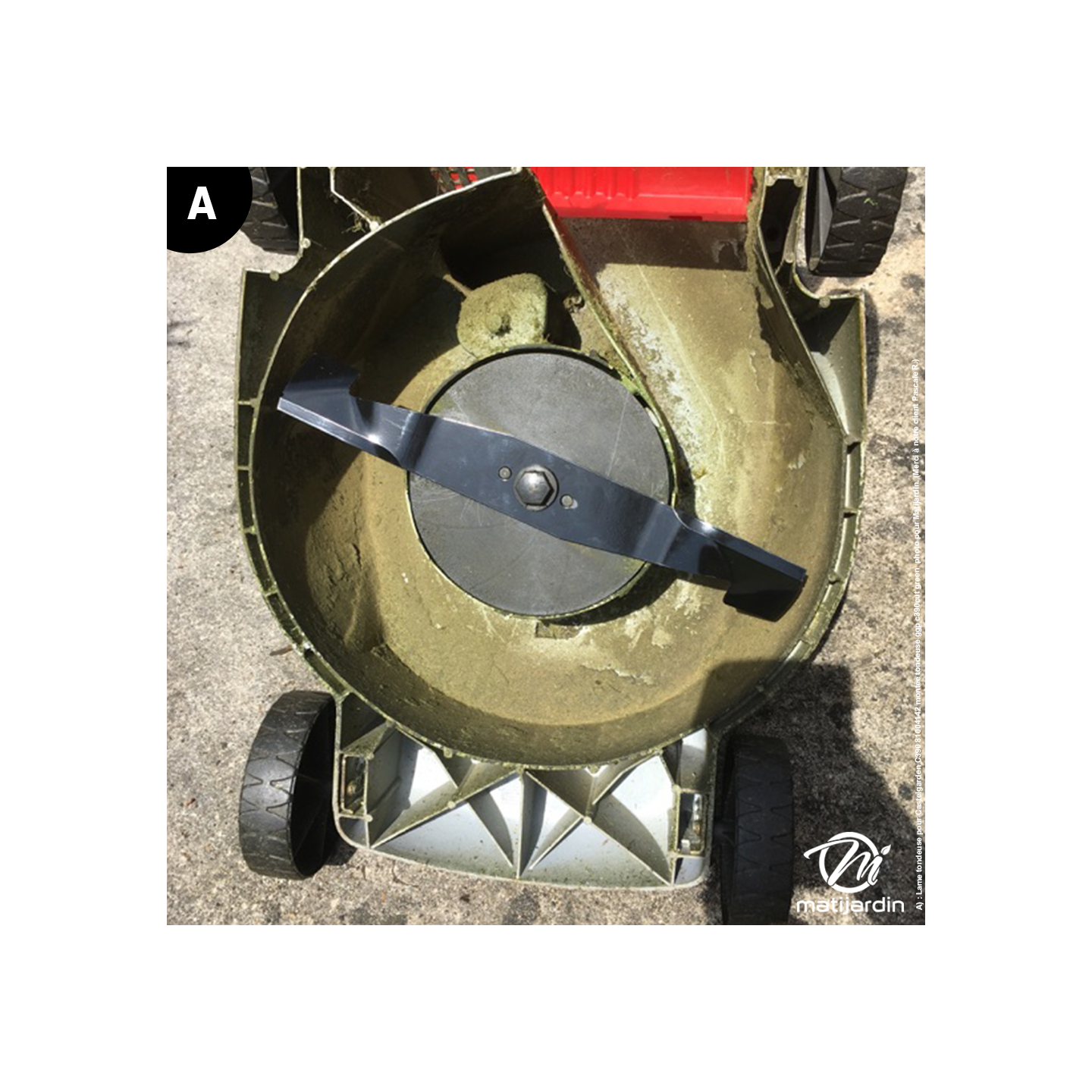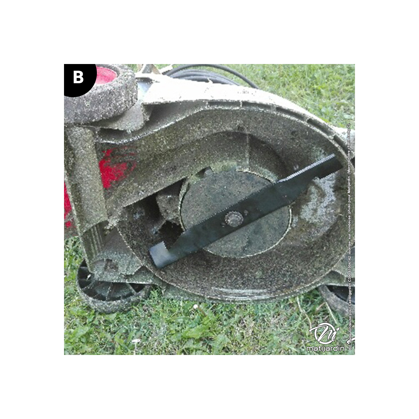 B) : Lame tondeuse pour Castelgarden C390 81004142 montée sur tondeuse photo pour Matijardin. (Merci à notre client Jacky C).