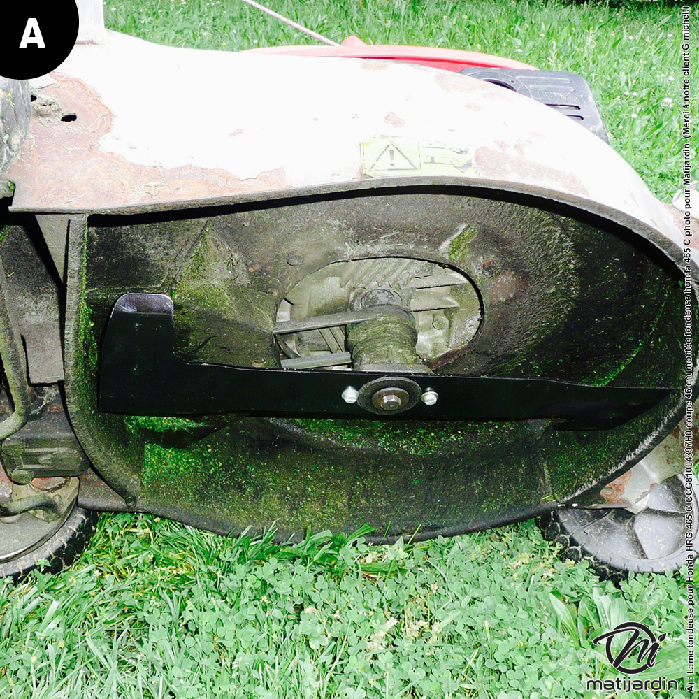 A) : Lame tondeuse pour Honda HRG 465 C CCG81004397H0 coupe 46 cm montée tondeuse honda 465 C photo pour Matijardin. (Merci à notre client G Michel.)
