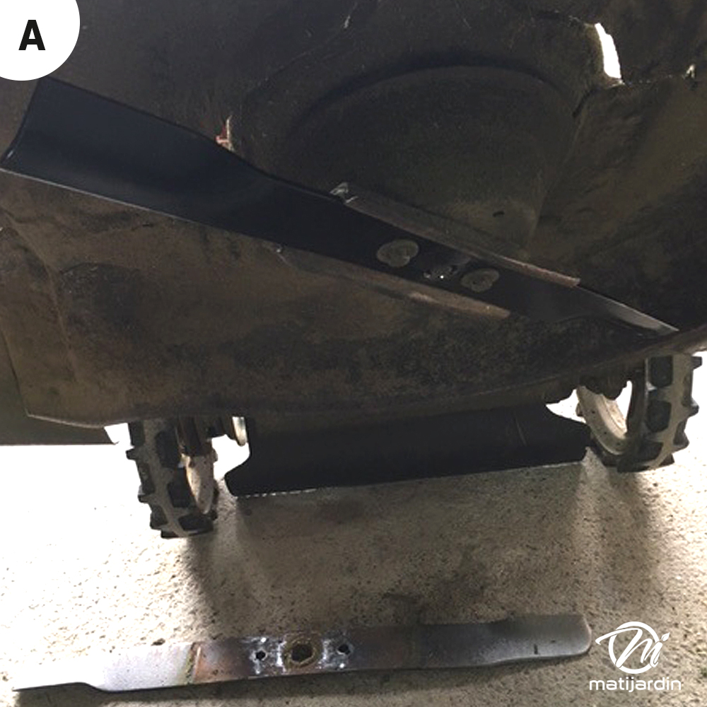 A)-Lame montée sur une tondeuse Honda um616 (photo client).