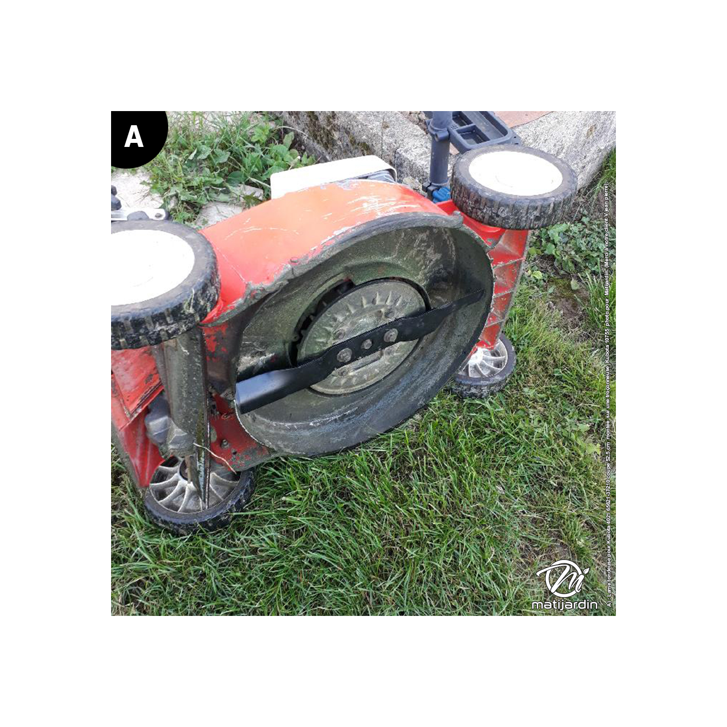 A) : Lame tondeuse pour Kubota 4021 65621-37210 coupe 52,5 cm montée sur une troçonneuse Kubota 10755 photo pour Matijardin. (Merci à notre client V jean pierre).