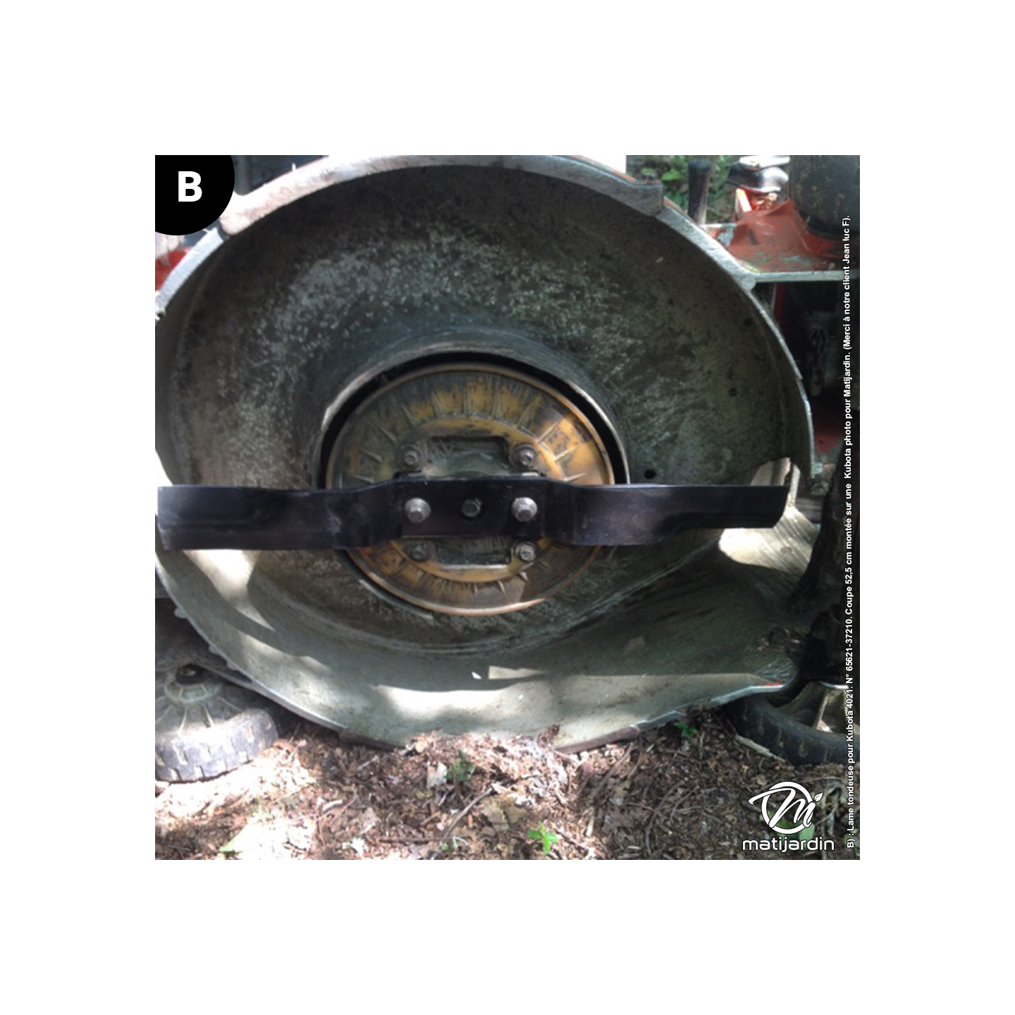 B) : Lame tondeuse pour Kubota 4021. N° 65621-37210. Coupe 52,5 cm montée sur une Kubota 10755 photo pour Matijardin. (Merci à notre client Jean luc F).