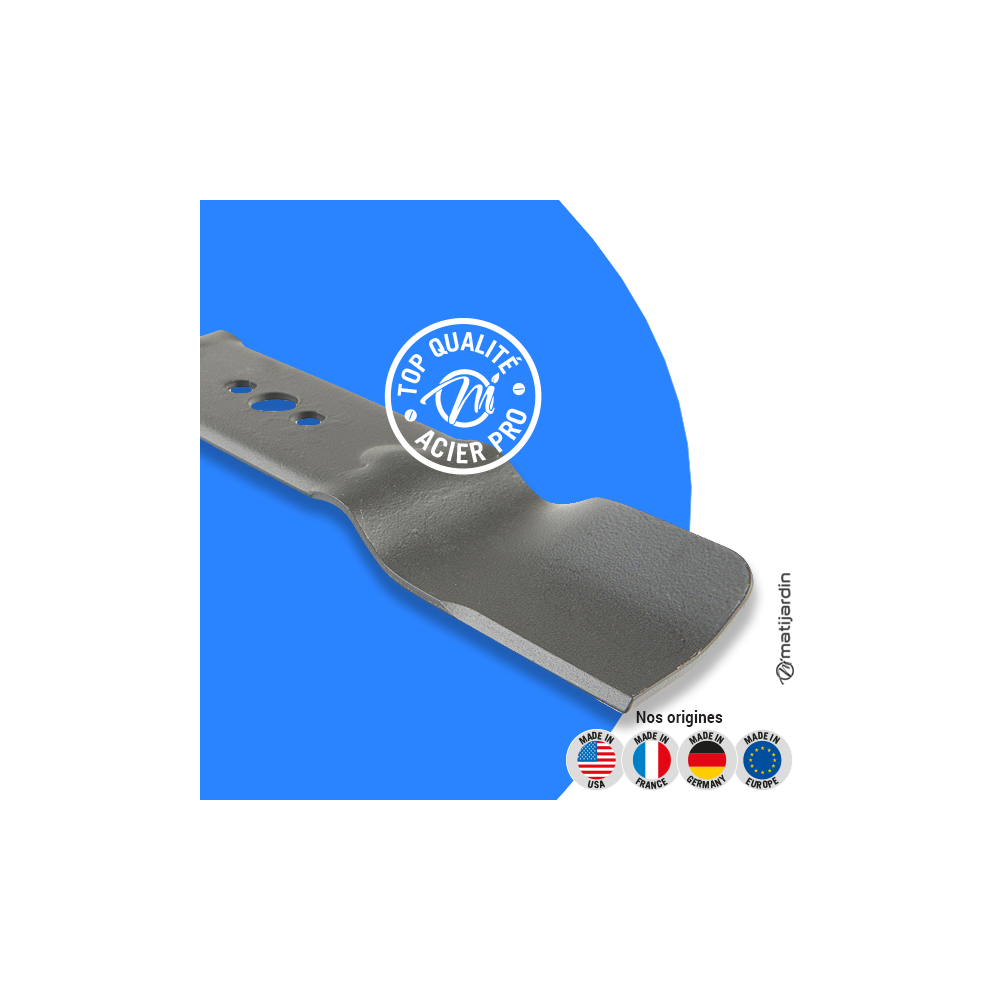 Astuce remontage. Au remontage, attention au sens de montage de la lame ! Pour la plupart des modèles de tondeuse, le côté plat du tranchant de la lame (illustration 2) doit se retrouver côté pelouse. Soyez vigilant, la partie coupante de votre lame peut vite vous envoyer aux urgences ! Matijardin vous conseille d’utiliser des gants.