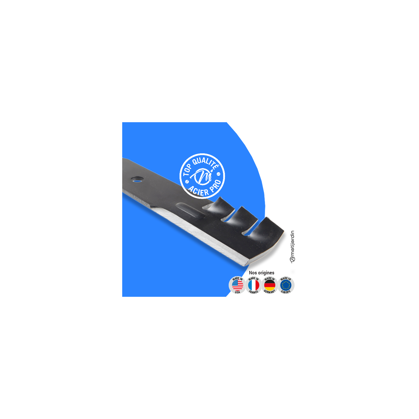 Astuce remontage. Au remontage, attention au sens de montage de la lame ! Pour la plupart des modèles de tondeuse, le côté plat du tranchant de la lame (illustration 2) doit se retrouver côté pelouse. Soyez vigilant, la partie coupante de votre lame peut vite vous envoyer aux urgences ! Matijardin vous conseille d’utiliser des gants.