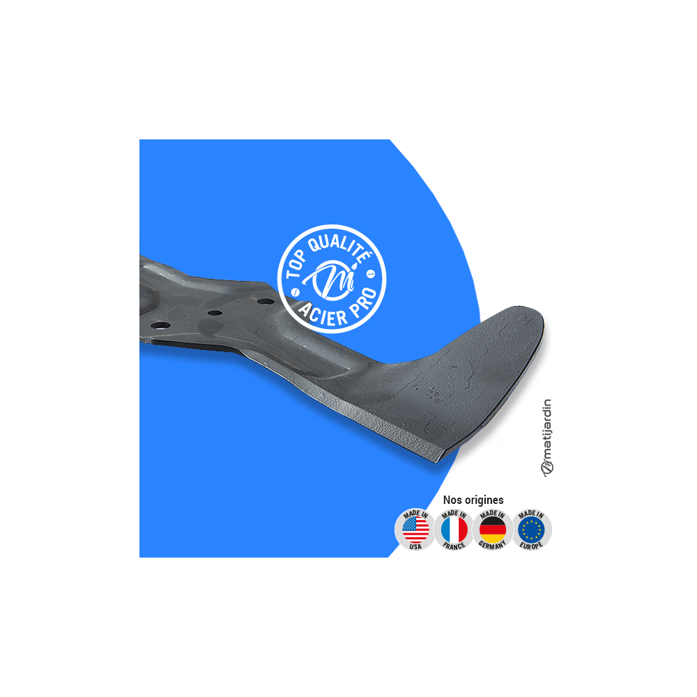 Astuce remontage. Au remontage, attention au sens de montage de la lame ! Pour la plupart des modèles de tondeuse, le côté plat du tranchant de la lame (illustration 2) doit se retrouver côté pelouse. Soyez vigilant, la partie coupante de votre lame peut vite vous envoyer aux urgences ! Matijardin vous conseille d’utiliser des gants.