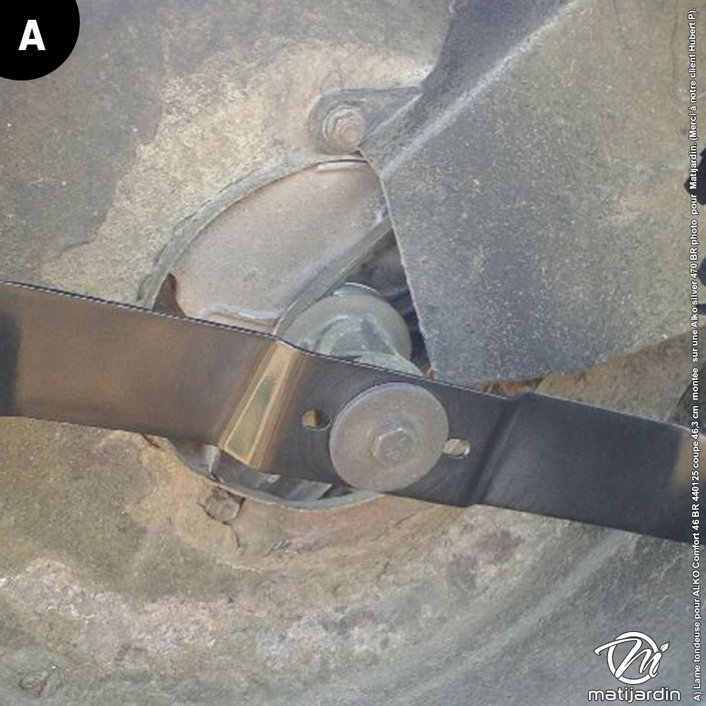 A) Lame tondeuse pour ALKO Comfort 46 BR 440125 coupe 46,3 cm montée sur une Alko silver 470 BR photo pour Matijardin. (Merci à notre client Hubert P).