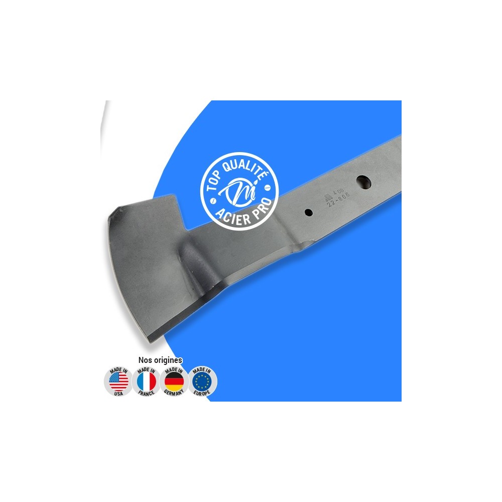 Lame droite, coupe à gauche. Pour autoportée à éjection arrière 102cm. Soufflante + mulching. Pour TM-102.18