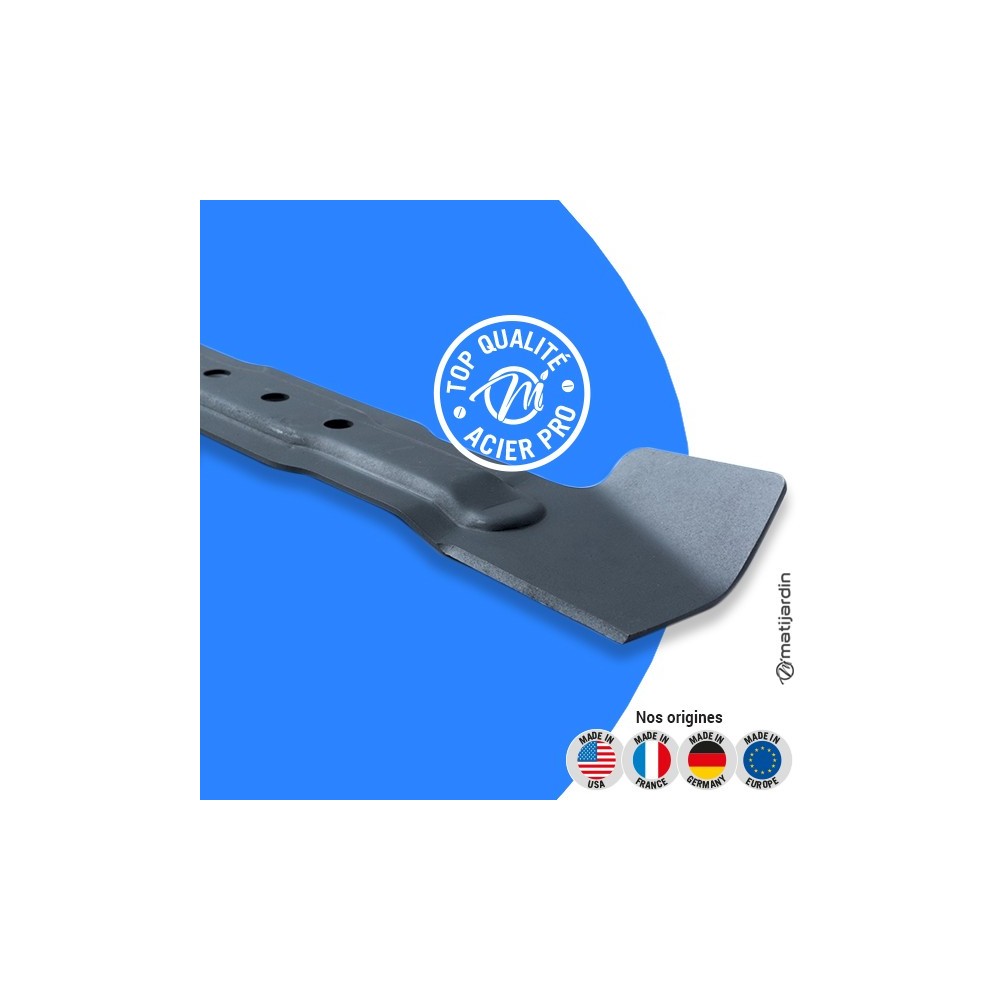 Astuce remontage. Au remontage, attention au sens de montage de la lame ! Pour la plupart des modèles de tondeuse, le côté plat du tranchant de la lame (illustration 2) doit se retrouver côté pelouse. Soyez vigilant, la partie coupante de votre lame peut vite vous envoyer aux urgences ! Matijardin vous conseille d’utiliser des gants.