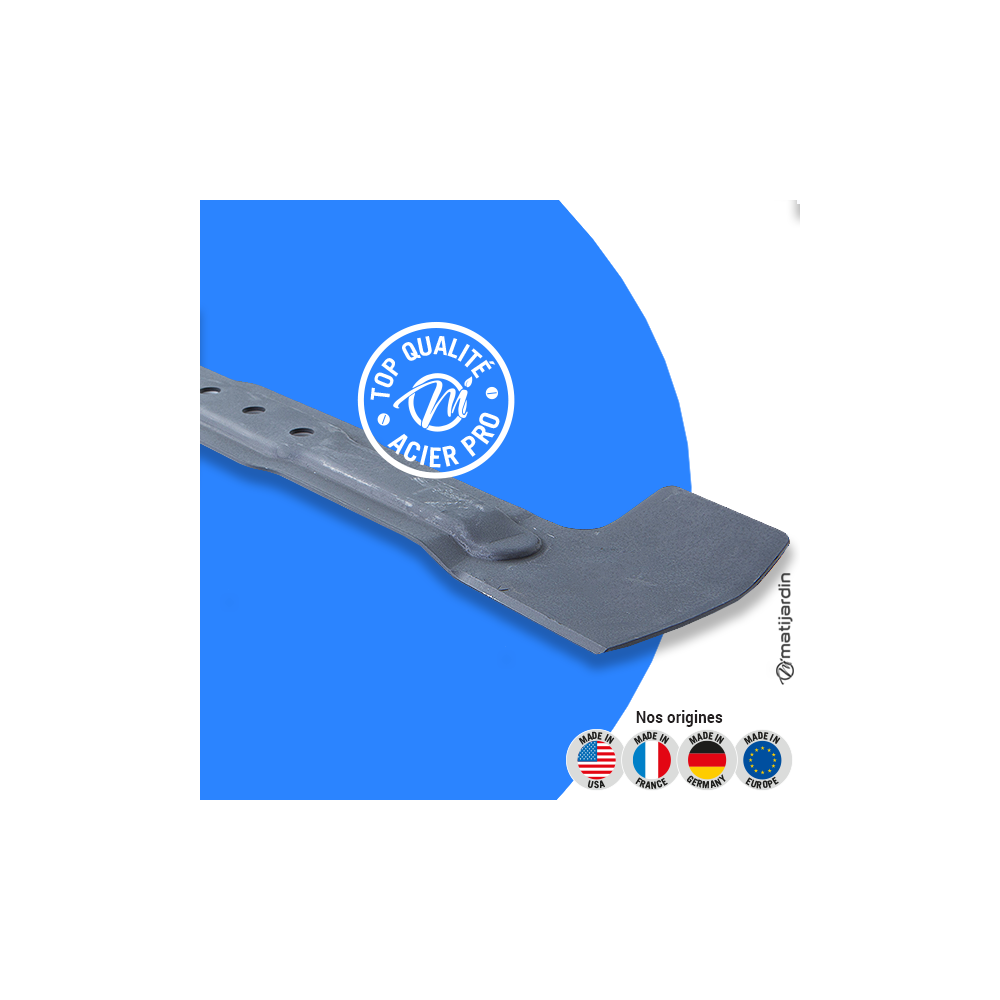 Astuce remontage. Au remontage, attention au sens de montage de la lame ! Pour la plupart des modèles de tondeuse, le côté plat du tranchant de la lame (illustration 2) doit se retrouver côté pelouse. Soyez vigilant, la partie coupante de votre lame peut vite vous envoyer aux urgences ! Matijardin vous conseille d’utiliser des gants.