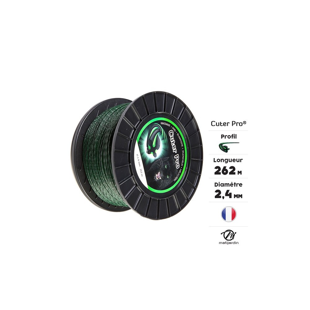 Le fil nylon Cuter Pro de forme hélicoïdale a été conçu pour apporter plus de discrétion aux résidus de coupe. Grâce à ses couleurs noire et verte, il se fondra dans votre terrain. Torsadé, bicolore, le fil débroussailleuse hélicoïdal Cuter'Pro est à la fois souple et résistant grâce à sa double matière. Ce fil est aussi bien plus silencieux que les autres fils, ceci dû à sa forme hélicoïdale.