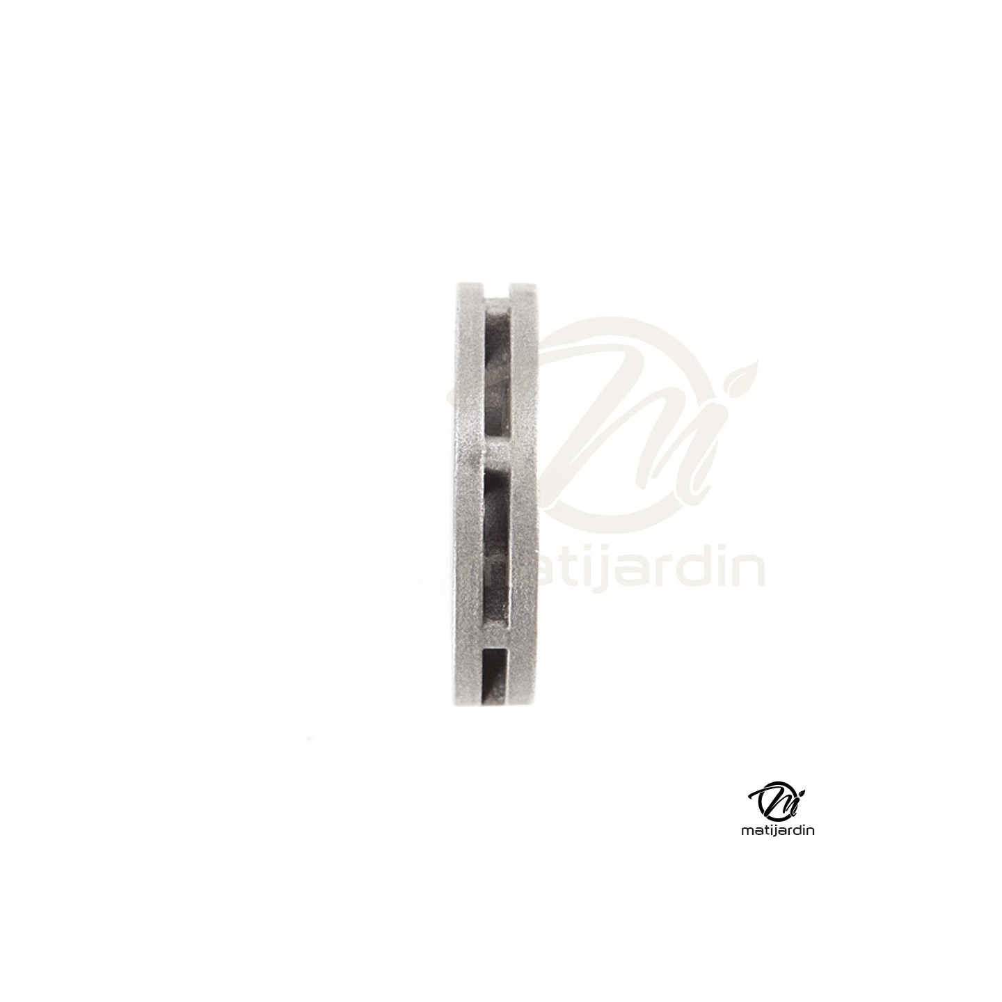 Le pignon d'entraînement de votre chaîne. L'entraînement de la rotation de votre chaîne est dû à la rotation du pignon. Ce pignon est lui-même propulsé par le moteur. L'espacement et le nombre de dents du pignon est en fonction du nombre d'entraîneurs de la chaîne et de son pas. Les entraîneurs guident votre chaîne dans le guide-chaîne et sont entraînés par le pignon. Le pas de la chaîne correspond à la longueur des maillons qui la constituent. A savoir : Notez les références avant de penser à remplacer le pignon, ces infos sont à respecter scrupuleusement.